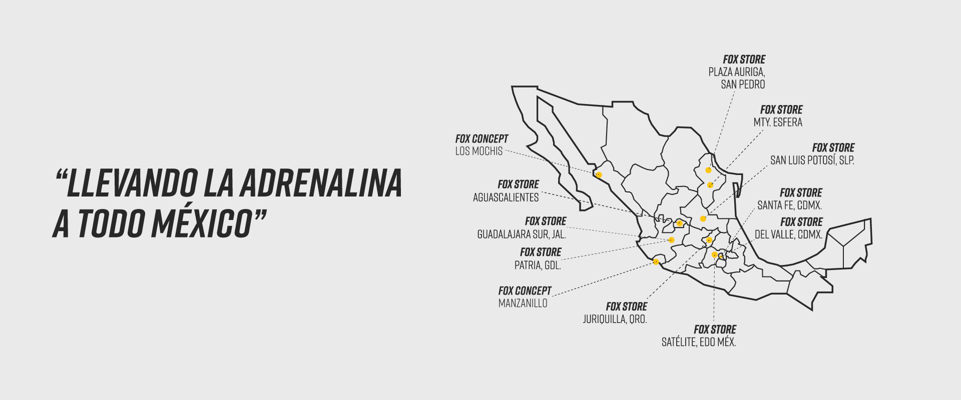 Tiendas oficiales operadas por Lifex que ofrecen la experiencia completa de Fox Racing en México: equipo técnico, estilo de vida, asesoría especializada y ambientación 100% alineada a la marca.
